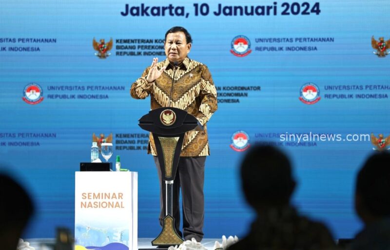 Jakarta.Sinyalnews.com – Menteri Pertahanan RI Prabowo Subianto menghadiri sekaligus menjadi pembicara kunci (keynote speaker) dalam acara Seminar Nasional yang diselenggarakan oleh Kementerian Koordinator Bidang Perekonomian Republik Indonesia dan Universitas Pertahanan RI di Grand Ballroom Kempinski, Jakarta, Rabu (10/1/2024).