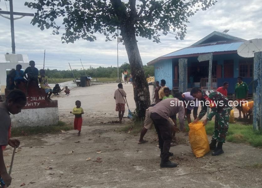 Timika. SINYALNEWS.COM – Peduli dengan kebersihan fasilitas umum, Sertu Henrik Renyaan anggota Babinsa Koramil 1710-01/Kokonao mengajak warga bergotong royong membersihkan pelabuhan di Kampung Kokonao, Distrik Mimika Barat, Kab. Mimika, Rabu (17/01/2024).