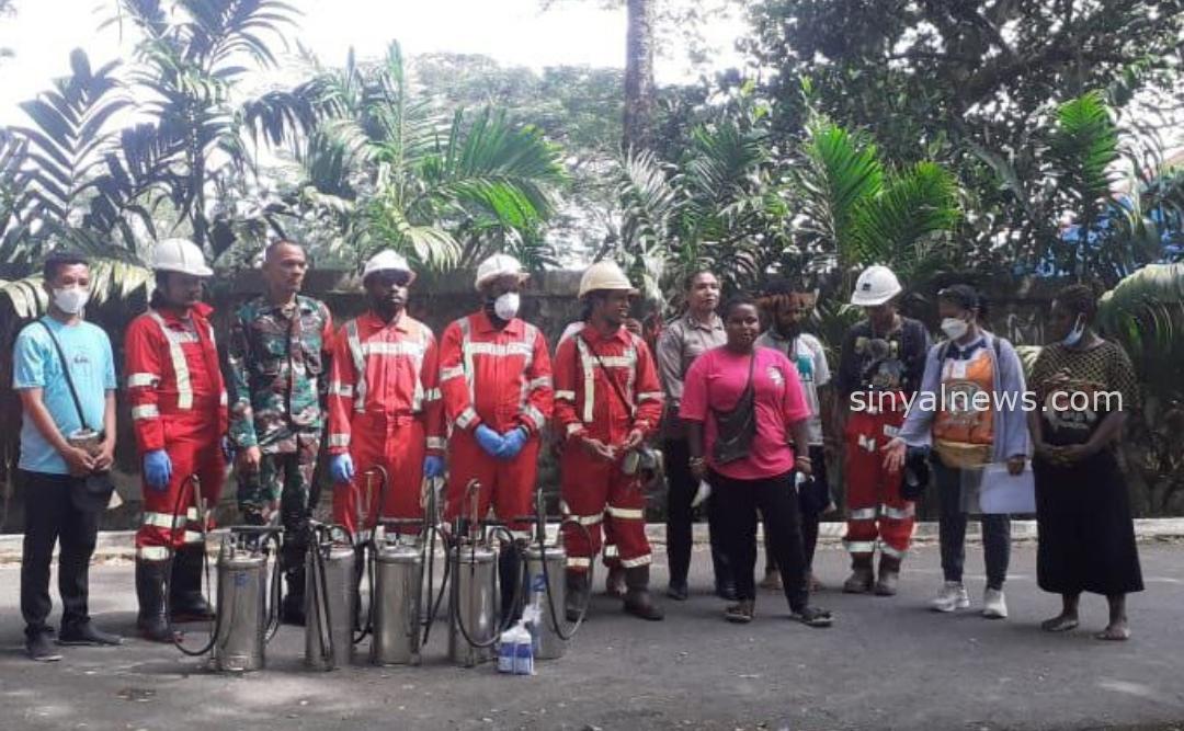 Timika SINYALNEWS.COM – Demam Berdarah Dengue (DBD) merupakan salah satu penyakit disebabkan oleh gigitan nyamuk yang dapat dicegah melalui pengendalian vektor dengan kimiawi, pengelolaan lingkungan, pengendalian hayati dan pemberantasan vektor secara genetik. Selaku aparat kewilayahan dalam upaya membantu mencegah penyebaran DBD di wilayah binaan, Serka Jufentino (Babinsa Koramil 1710-03/Kuala Kencana) melalui giat Binternya kali ini membantu Puskesmas setempat melaksanakan pencegahan dengan metode Indoor Residual Sprying (IRS) ke rumah warga Kp. Jimbi, Distrik Kuala Kencana, Kab. Mimika, Kamis (08/02/2024).