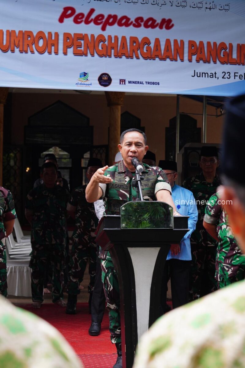 (Puspen TNI), SINYALNEWS.COM – Panglima TNI Jenderal TNI Agus Subiyanto melepas jamaah Umroh penghargaan Panglima TNI sebanyak 285 personel, yang dihadiri oleh seluruh Pejabat Utama Mabes TNI, dilaksanakan di halaman Masjid Sudirman Mabes TNI, Cilangkap, Jakarta Timur. Jumat (23/2/2024).
