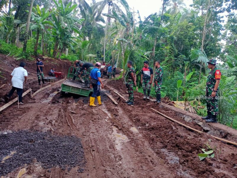 Kendati kondisi jalan yang baru dibuka telah mencapai 100 % (telah tembus), namun capaian rata-rata baru 58,3 %, dan pasca turun hujan becek serta gampang amblas sangat wajar mengingat waktu pengerjaan baru berjalan kurang lebih dua pekan sejak dibuka TMMD pada (20/02/24). Seluruh progres sarana fisik pendukung lainnya terus dikerjakan seperti drainase telah mencapai 90 %, gorong-gorong 70 %, senderan 75 %, betonisasi 25 % dan leneng telah mencapai 21 %.