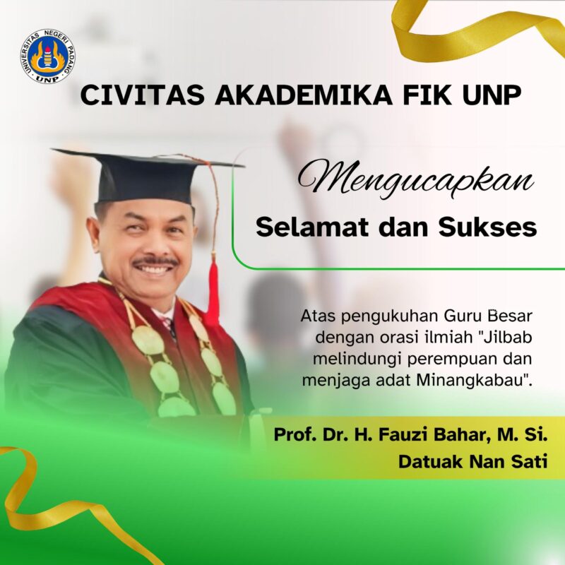 PADANG SINYALNEWS.COM –Dekan dan Civitas Akademika FIK UNP merasa bangga, hal itu yang disampaikan Prof. Dr. Nurul Ihsan, M.Pd beserta Civitas Akademika FIK UNP turut bangga kepada 1 orang Alumni FIK UNP yang meraih gelar Profesor ini yang telah berdampak terhadap kualitas lulusan FIK UNP dari kalangan Alumni.