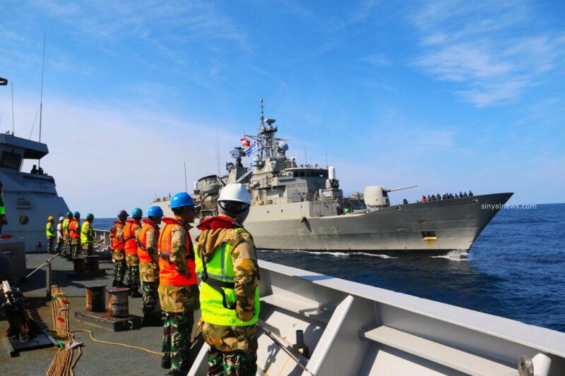 Puspen TNI SINYALNEWS.COM — KRI Diponegoro-365 yang lebih dulu bergabung di MTF 448, mengucapkan selamat datang kepada kapal perang asal Yunani HS Spetsai F-453 (Hydra Class) dengan melaksanakan latihan bersama di Area of Maritime Operation (AMO) Zona 1 North, Laut Mediterania, Lebanon, Sabtu (23/03/2024).