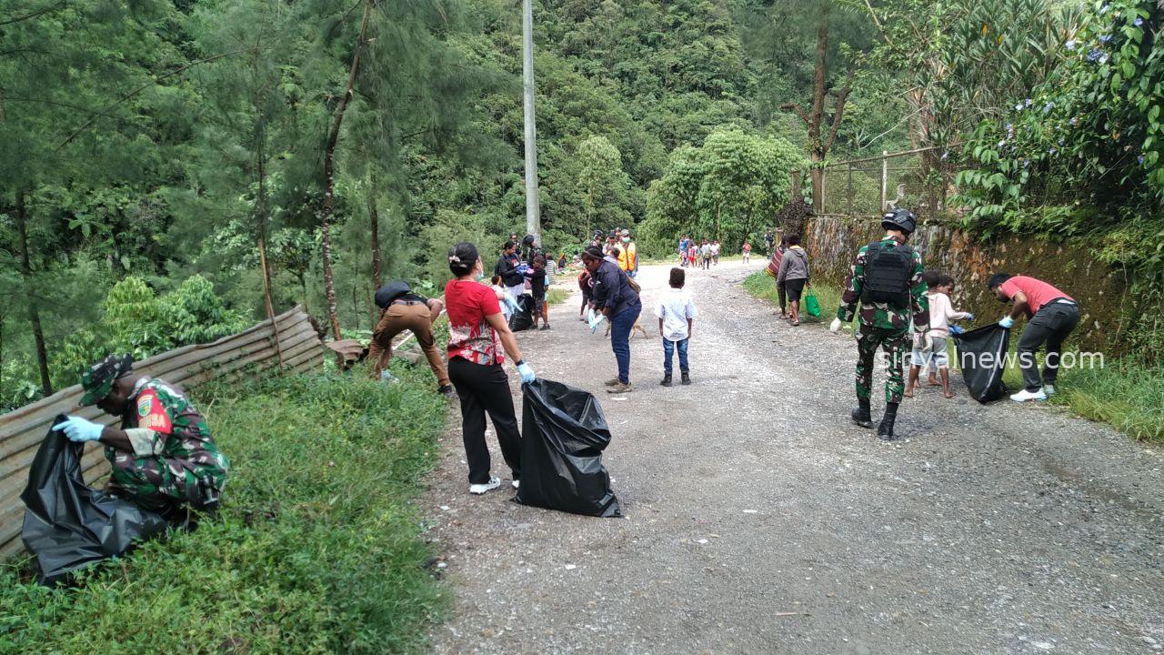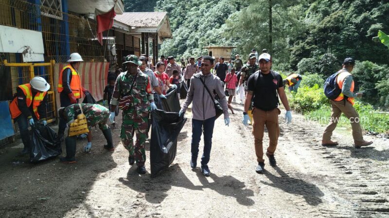Timika SINYALNEWS.COM — Upaya menciptakan lingkungan bersih dan rapi, Koramil 1710-04/Tembagapura dipimpin Danramil Kapten Chb Eliazar Manuk Allo ajak warga kerja bakti bersihkan jalan masuk Kp. Waa Banti, Distrik Tembagapura, Kab. Mimika, Kamis (28/03/2024).