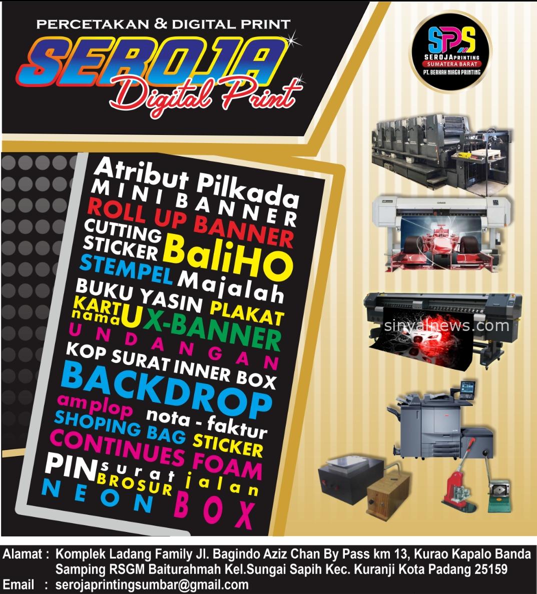 Kantor Seroja Printing Sumbar yang beralamat di samping gerbang Rumah Sakit Gigi dan Mulut (RSGM) Baiturahmah Padang, sekitar 300 meter dari Balaikota dan kantor DPRD Kota Padang kearah Teluk Bayur, Tepatnya Komplek Ladang Keluarga