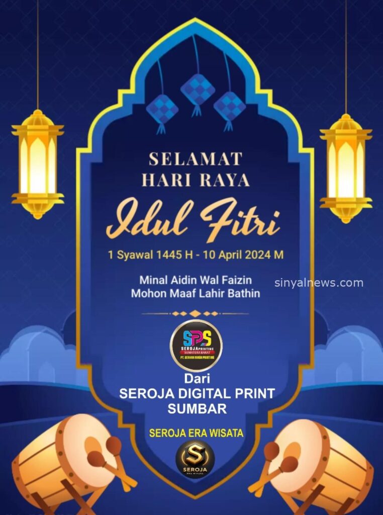 PADANG SINYALNEWS.COM – Menyambut Hari Raya Idul Fitri 1 Syawal 1445 Hijriah Tahun 2024 Pimpinan dan Segenap Karyawan Seroja Printing Sumbar (SPS) mengucapkan Selamat Hari Raya Idul Fitri 1 Syawal 1445 H Minal aidin wal faizin, Mohon Maaf Lahir Bhatin ”.Semoga Allah SWT menerima amal ibadah kita selama Ramadhan.