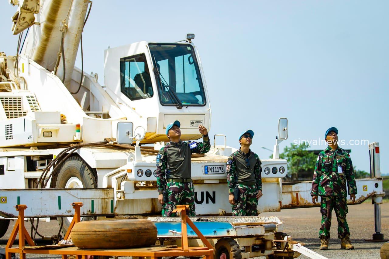 Beberapa personel dan operator alat berat dibawah pimpinan Kapten Mar Engga Fasha selaku Danton Pleton Bantuan Satgas Kizi TNI Konga XXXVII-J Minusca Car bekerja dengan profesional dan hati – hati mengingat material yang dipindahkan maupun alat yang digunakan sangat membutuhkan tingkat ketelitian dan memiliki resiko yang cukup tinggi.