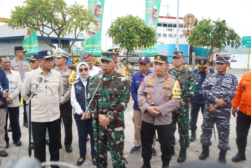 Puspen TNI SINYALNEWS.COM — Dalam rangka memastikan kesiapan Arus Mudik Lebaran tahun 2024 dan memberikan jaminan keamanan serta pelayanan yang optimal, Panglima TNI Jenderal TNI Agus Subiyanto, S.E., M.Si, bersama Menteri Perhubungan RI Budi Karya Sumadi dan Kapolri Jenderal Pol Drs. Listyo Sigit Prabowo, Msi melakukan peninjauan di Pelabuhan Gilimanuk, Bali, pada Kamis (04/04/2024).