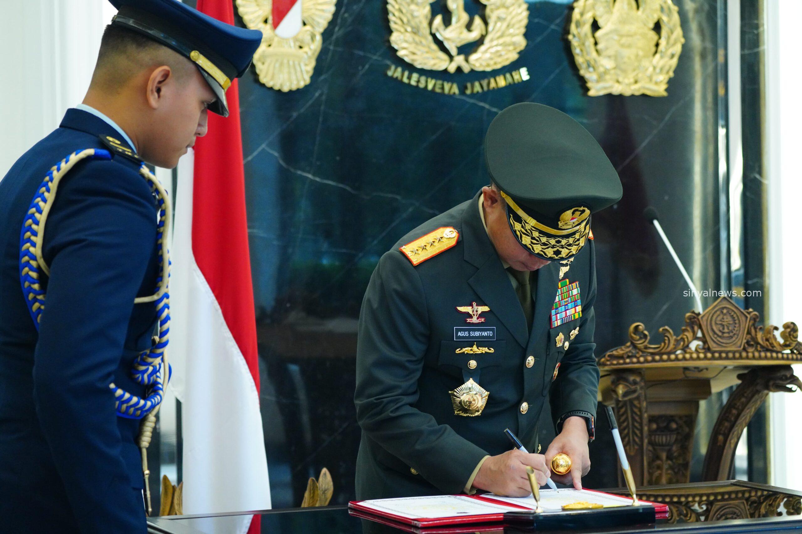 Puspen TNI SINYALNEWS.COM — Panglima TNI Jenderal TNI Agus Subiyanto, S.E., M.Si, memimpin Upacara penyerahan tugas, wewenang dan tanggung jawab Jabatan Panglima Komando Gabungan Wilayah Pertahanan II (Pangkogabwilhan II), bertempat di Subden Mabes TNI, Jl. Medan Merdeka Barat, Jakarta Pusat, Jum’at (05/04/2024).
