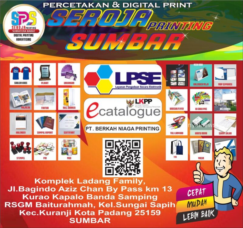 PADANG SINYALNEWS.COM — Seroja Printing Sumbar (SPS) siap memberikan layan terbaik untuk kebutuhan jasa percetakan Digital Printing dan Advertising dengan moto : ” layanan lebih cepat, mudah dan hasil lebih baik”