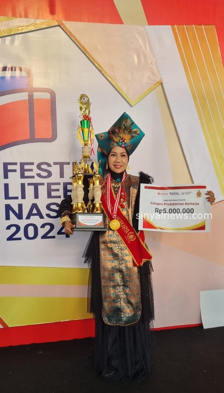 Padang, SINYALNEWS.COM,- — Eka Teresia, S.Pd. MM Guru SMK Negeri 6 Padang meraih Juara I Adi Acarya Award Kategori Produktifitas Berkarya pada Festival Literasi Nasional 2024 yg diselenggarakan oleh Nyalanesia di Tirtonadi Convention Hall Solo – Surakarta