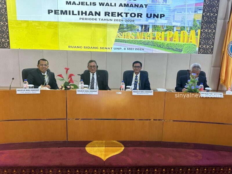 Air Tawar, SINYALNEWS.COM,- — Dekan Fakultas Teknik, Dr.Ir. Krismadinata ST MT, terpilih menjadi Rektor Universitas Negeri Padang (UNP) Periode 2024-2029 dalam pemilihan yang dilaksanakan Majelis Wali Amanat (MWA) pada Sidang Khusus MWA Pemilihan Rektor 2024-2029 di Ruang Sidang Senat, Rabu Siang (8/5/2024).