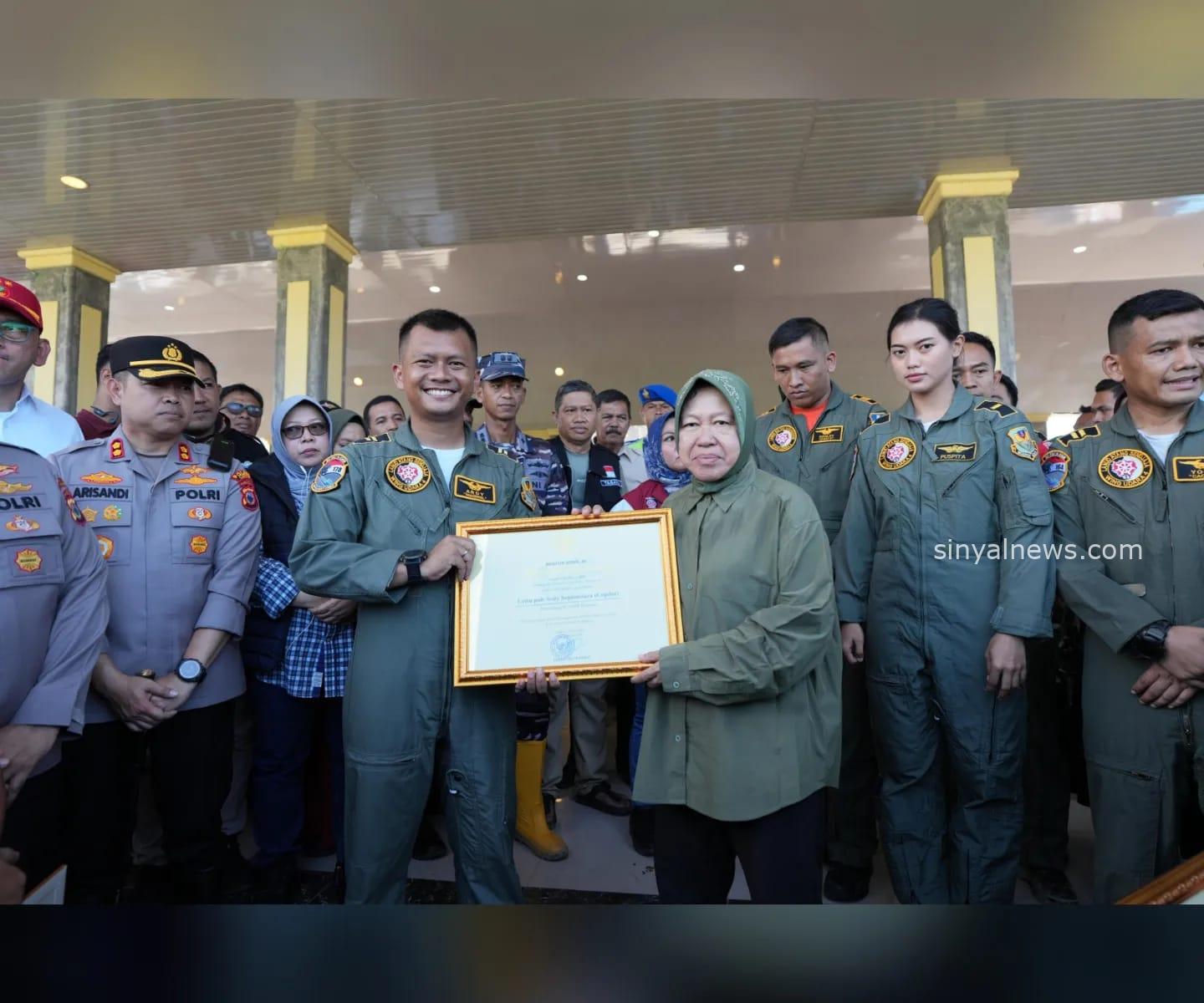 Makassar SINYALNEWS.COM — Komandan Lanud (Danlanud) Sultan Hasanuddin, Marsma TNI Bonang Bayuaji G., S.E.,M.M., menerima piagam penghargaan dari Menteri Sosial Republik Indonesia, Tri Rismaharini, atas peran dan kontribusi dalam membantu evakuasi dan distribusi bantuan untuk korban bencana banjir dan tanah longsor di Kabupaten Luwu, bertempat di Posko Induk Tanggap Darurat Bencana di Lapangan Andi Djemma, Kabupaten Luwu, Provinsi Sulawesi Selatan, Jumat (10/5/2024).