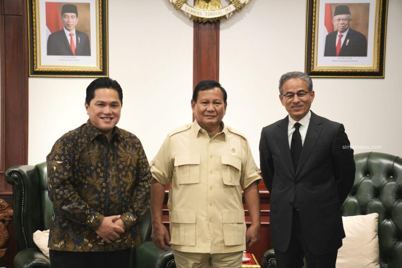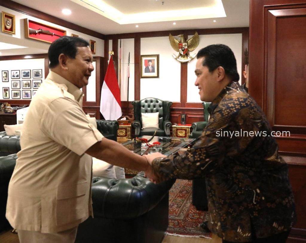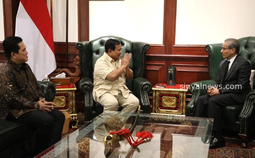 Jakarta SINYALNEWS.COM — Menteri Pertahanan RI Prabowo Subianto menerima kunjungan Menteri Badan Usaha Milik Negara (BUMN) Erick Thohir dan pendiri Emaar Properties, pengusaha properti asal Uni Emirat Arab dan pemilik gedung tertinggi di dunia Burj Khalifa, Mohamed Ali Rashed Alabbar, di kantor Kementerian Pertahanan RI, Jakarta, Senin (27/5/2024).