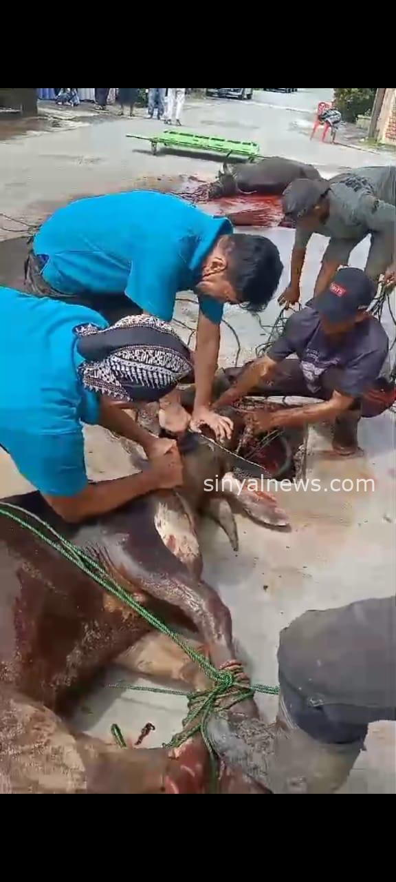 Padang, SINYALNEWS.COM,- — Menyambut hari raya Idul Adha tahun ini warga Rw.09 Komplek Papcy Kel.Ampang Padang bersama sama menyalurkan hewan qurban sebanyak 15 ekor sapi dan 1 ekor kambing di Masjid Al Muhajirin yang berada didalam komplek Papcy Rw.09 Kelurahan Ampang Kec Kuranji kota Padang. Pelaksanaan pemotongan hewan qurban ini dilakukan setelah warga selesai melaksanakan ibadah sholat Idul Adha pada hari Senin kemaren.