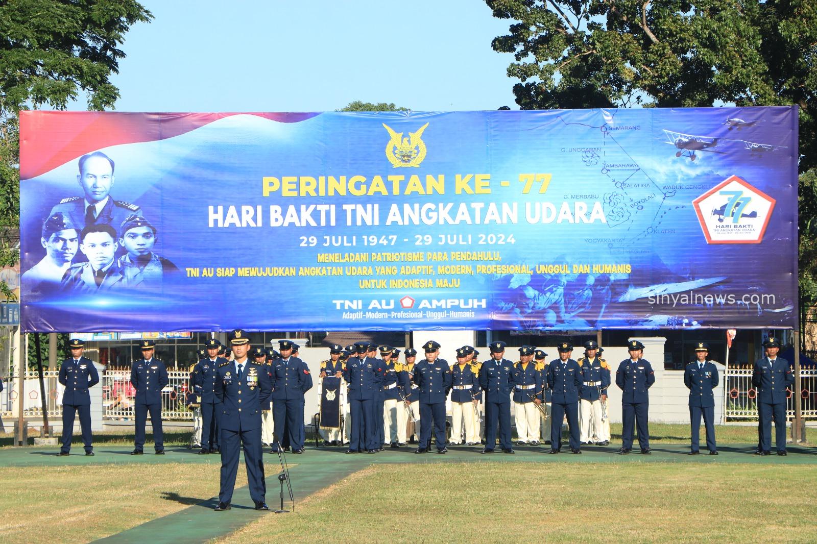 Peringatan Hari Bakti Ke-77 TNI AU memgangkat tema “Meneladani Patriotisme Para Pendahulu, TNI AU Siap Mewujudkan Angkatan Udara yang Adaptif, Modern, Profesional, Unggul dan Humanis untuk Indonesia Maju”.