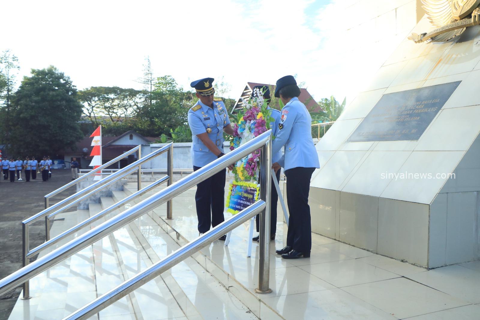 Upacara dihadiri oleh segenap Perwira, Bintara, Tamtama, serta Aparatur Sipil Negara (ASN) TNI AU yang bertugas di Lanud Sultan Hasanuddin. (Pen Hnd)