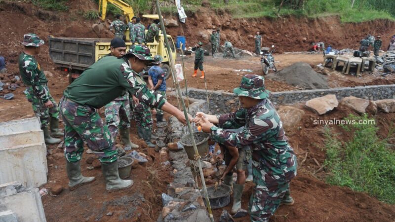 Pembangunan talud tersebut memang cukup berat, hanya saja berkat pengerahan warga yang maksimal, saling bahu membahu antara Satgas TMMD dan sejumlah unsur lain sehingga talud pun sudah hampir selesai.