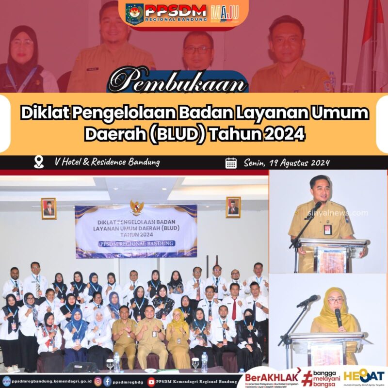 Bandung, SINYALNEWS.COM,- — Dalam upaya meningkatkan kapasitas dan kompetensi aparatur pemerintah daerah, Pusat Pengembangan Sumber Daya Manusia (PPSDM) Regional Bandung pada Badan Pengembangan Sumber Daya Manusia (BPSDM) Kementerian Dalam Negeri (Kemendagri), telah menyelenggarakan acara Pembukaan Pendidikan dan Pelatihan (Diklat) Pengelolaan Badan Layanan Umum Daerah (BLUD) Tahun 2024. Acara yang berlangsung di V Hotel and Residence, Bandung, ini menjadi salah satu program strategis Kemendagri untuk memperkuat pengelolaan BLUD di seluruh Indonesia.