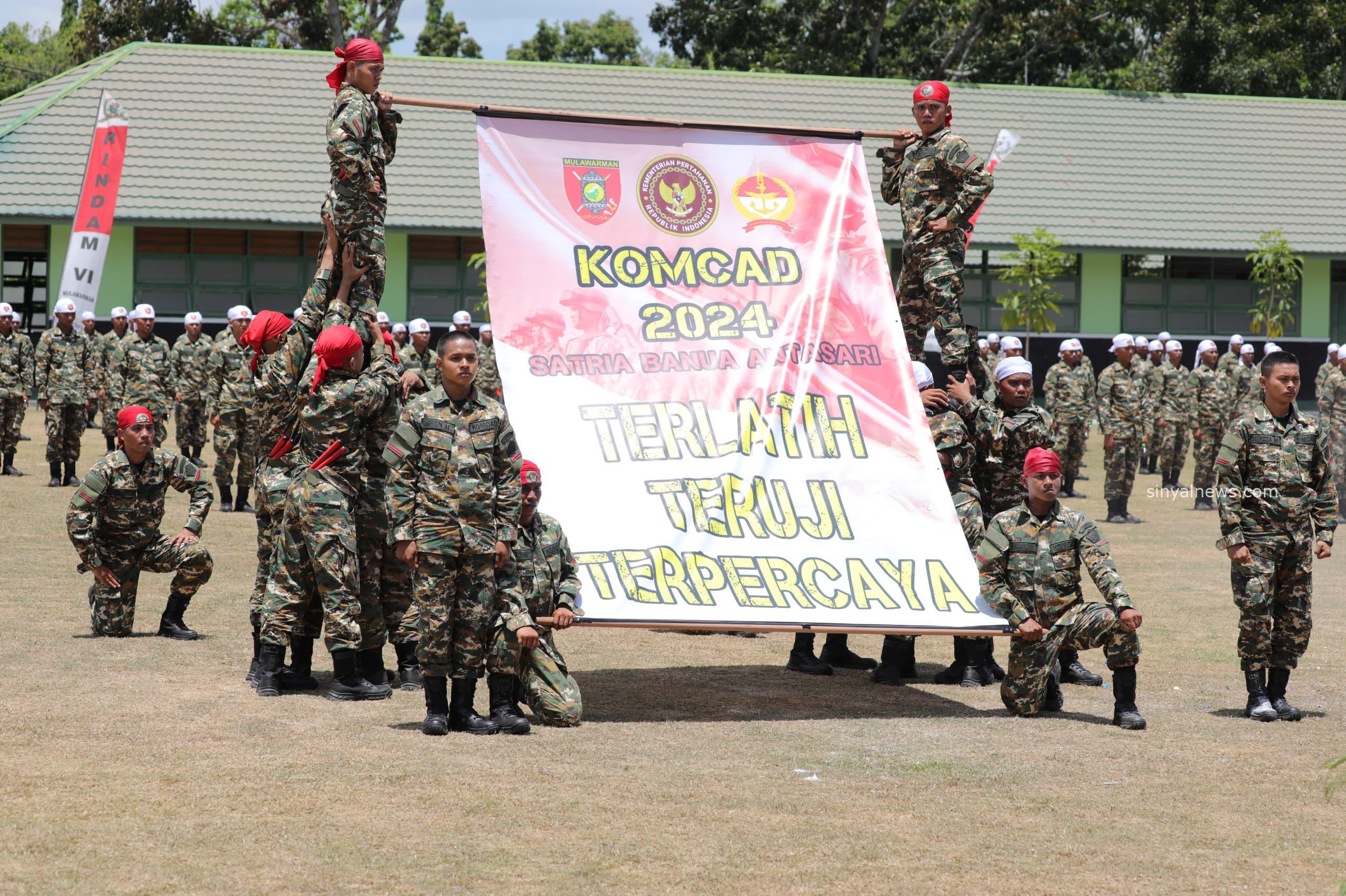 Banjarbaru, Kalsel SINYALNEWS.COM – Panglima Kodam VI/Mulawarman Mayjen TNI Tri Budi Utomo selaku Inspektur Upacara secara resmi menutup Latihan Dasar Kemiliteran (Latsarmil) Komponen Cadangan (Komcad) TA. 2024, di Lapangan Kejujuran Markas Komando (Mako) Resimen Induk Rayon Militer (Rindam) VI/Mlw Kodam VI/ Mulawarman Kalimantan Selatan, Senin (9/9/2024). Sebanyak 500 peserta Komcad Matra Darat mengikuti upacara penutupan Latsarmil untuk gelombang pertama.