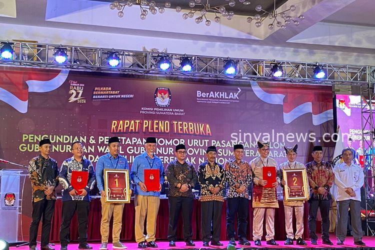 Penetapan nomor urut tersebut dilakukan dalam rapat pleno terbuka yang diselenggarakan Komisi Pemilihan Umum (KPU) Sumbar pada Senin (23/9/2024) di ruang Pangeran Beach Hotel Padang.