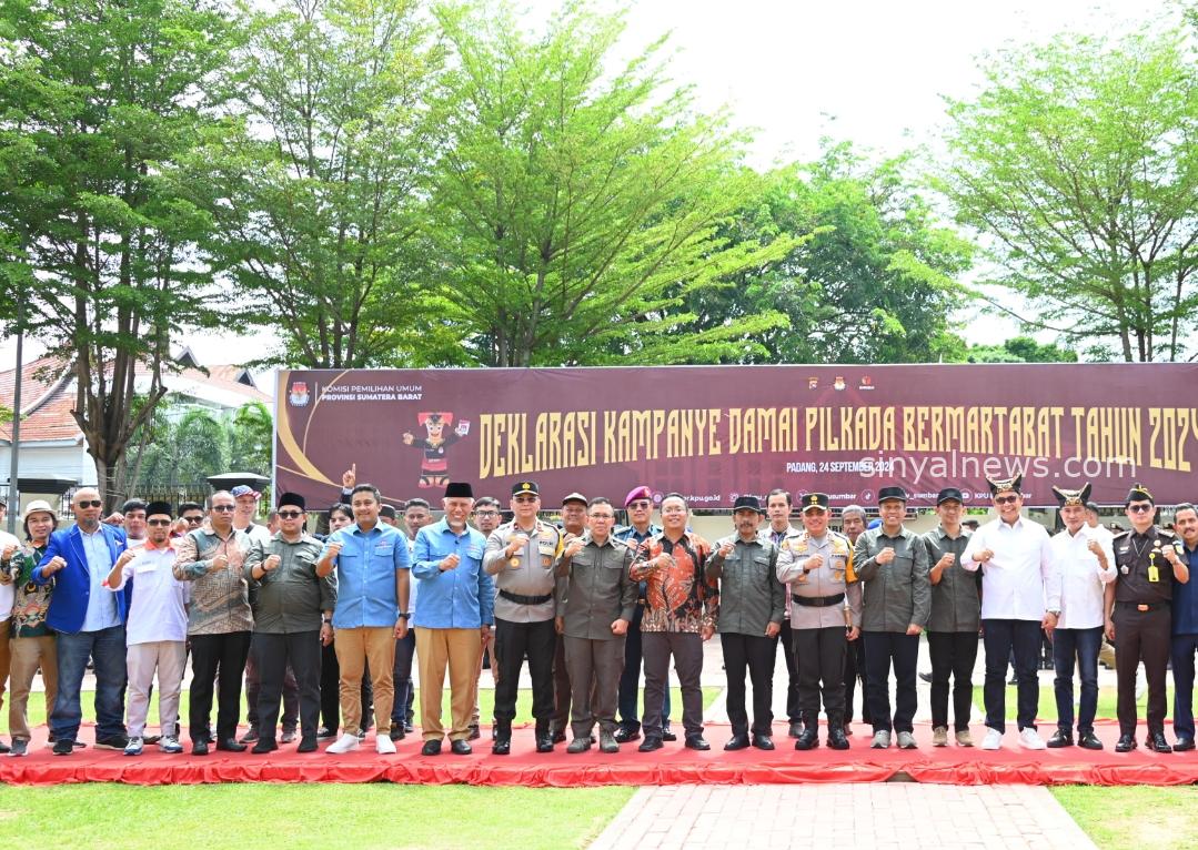 Kegiatan apel Deklarasi kampanye damai Pilkada ini dilaksanakan di depan kantor Polda Sumbar, pada Selasa (24/9) pagi yang menampilkan jajaran Forkompimda dan partai pengusung serta undangan lainnya.