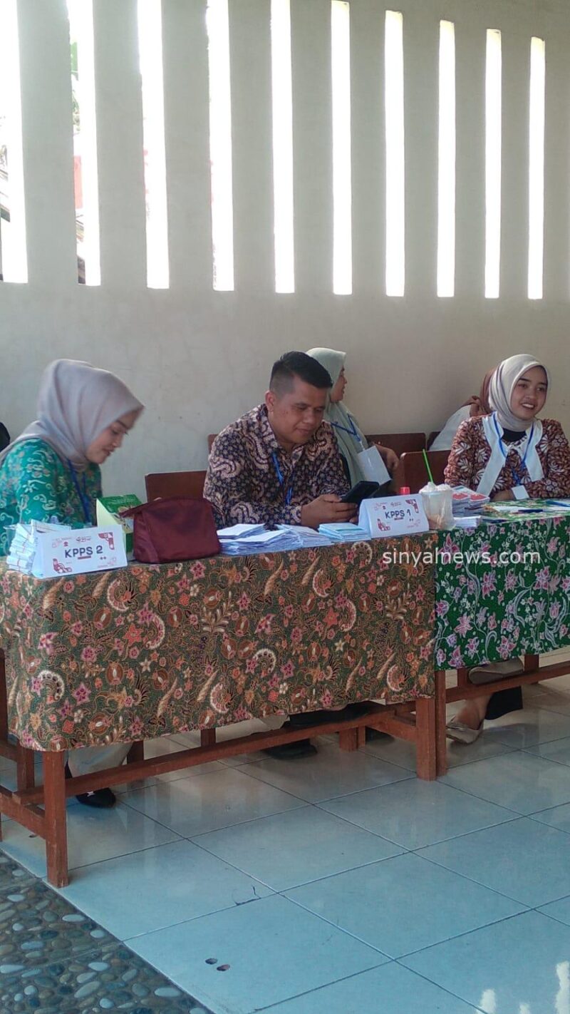 Pelayanan panitia pendaftaran peserta pemilih, Kardila Hanum dan Rizky Maharda, diiringi dengan senyum ramah saat melakukan proses verifikasi data diri para peserta pemilih, kemudian diberikan surat suara untuk mencoblos.