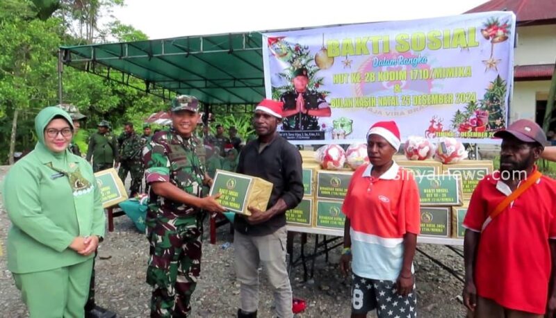 Timika, SINYALNEWS.COM – Dalam rangka menyambut hari raya Natal 2024, Dandim 1710/Mimika Letkol Inf M. Slamet Wijaya, S.Sos.,M.Han.,M.A. menyelenggarakan kegiatan Bakti Sosial dalam rangka HUT Kodim 1710/Mimika dan bulan kasih Natal, Senin (23/12/2024). Kegiatan ini dilaksanakan di Kp. Lemasa, Distrik Kuala Kencana, Kab. Mimika yang juga dihadiri oleh Ketua Persit KCK Cabang XXXV, Ibu Ulfa Slamet Wijaya dan juga anggota Persit Kodim.