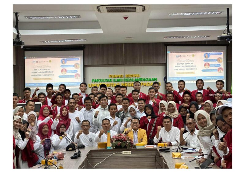 Fakultas Ilmu Keolahragaan (FIK) Universitas Padang (UNP) pada hari Senin, 23 Desember 2024, di Ruang Sidang FIK UNP kedatangan tamu berjumlah 70 siswa-siswi SMA Negeri 5 Bengkulu Selatan beserta Wakil Kepala Sekolah Bapak Sadikin Asri. S.Pd. dan sekitar 13 guru pendamping, melakukan kunjungan studi banding