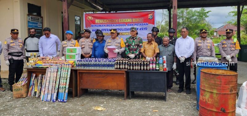 SINYALNEWS.COM Yahukimo, 6 Januari 2025 – Dalam rangka menyambut tahun baru 2024 dan menjaga keamanan serta ketertiban masyarakat, Kodim 1715/Yahukimo dan Polres Yahukimo bersama jajaran Pemda Yahukimo, tokoh agama, dan tokoh adat setempat melakukan aksi pemusnahan minuman keras hasil dari patroli gabungan. Kegiatan ini dilaksanakan di halaman kantor Polres Yahukimo dan dihadiri oleh berbagai elemen masyarakat.