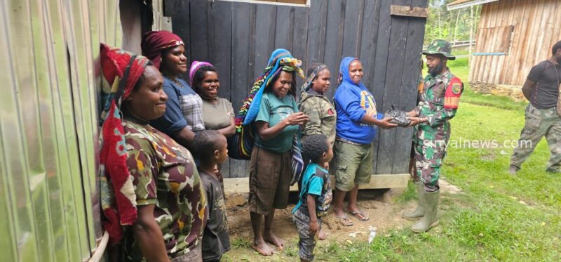 SINYALNEWS.COM ,Puncak Jaya – Pos Ramil Tingginambut melasanakan kegiatan Anjangsana kepada masyarakat di sekitar wilaya Pos Ramil 1714-06/tingginambut, Kodim 1714/Puncak Jaya dalam rangka Bakti Sosial (Baksos) kepedulian terhadap warga masyarakat di wilayah binaannya, kali ini Danpos Ramil Serka Muhamad bersama Anggota Babinsa melaksanakan Baksos dengan membagikan sejumlah paket sembako kepada warga binaan di kampung tingginambut, Distrik tingginambut, Kab Puncak Jaya, Senin (20/01/2025).