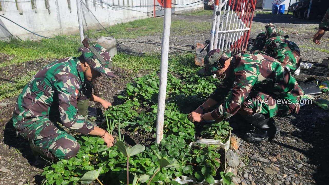 Puncak Jaya-SINYALNEWS – Personel Satgas Pamtas Kewilayahan Yonif 715/Motuliato, ciptakan ketahanan pangan dengan bercocok tanam di lahan sekitaran Pos Pruleme, Distrik Mulia Kabupaten Puncak jaya, Sabtu (15/02/2025).