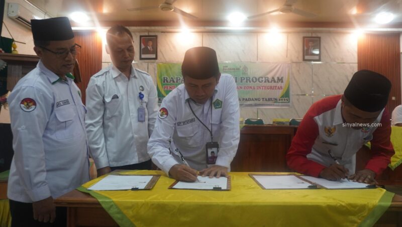 Padang,SinyalNees.Com – Kepala Kantor Kementerian Agama Kota Padang ,Edy Oktafiandi didampingi Kepala seksi Bimbingan Masyarakat Islam, Aris Junaidi menandatangani Perjanjian Kerjasama dengan Forum Kader Posyandu Indonesia (FKPI) Kota Padang, berlangsung di Lt.2 Kemenag setempat, Senin 24 Februari 2025.