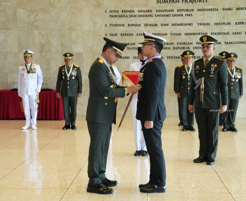 Puspen TNI-SINYALNEWS. Panglima TNI Jenderal TNI Agus Subiyanto menyematkan Tanda Kehormatan Republik Indonesia Bintang Jalasena Utama kepada Kepala Staf Angkatan Laut Singapura Rear Admiral Sean Wat, bertempat di Mabes TNI, Cilangkap, Jakarta Timur, Rabu (19/03/2025).