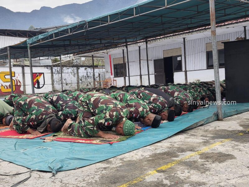Puncak Jaya-SINYALNEWS – Satgas Yonif 715/Mtl rayakan Idul Fitri 1446 H tahun 2025 di daerah penugasan dengan khusyuk dan rasa syukur walau jauh dari keluarga dan orang yang di cintai, tidak menyurutkan sedikitpun semangat para prajurit saat melaksanakan tugas dan tetap bersama-sama merayakan hari kemenangan di Pos-Pos Satgas Yonif 715/Mtl Puncak Jaya Papua, Senin (31/03/2025).