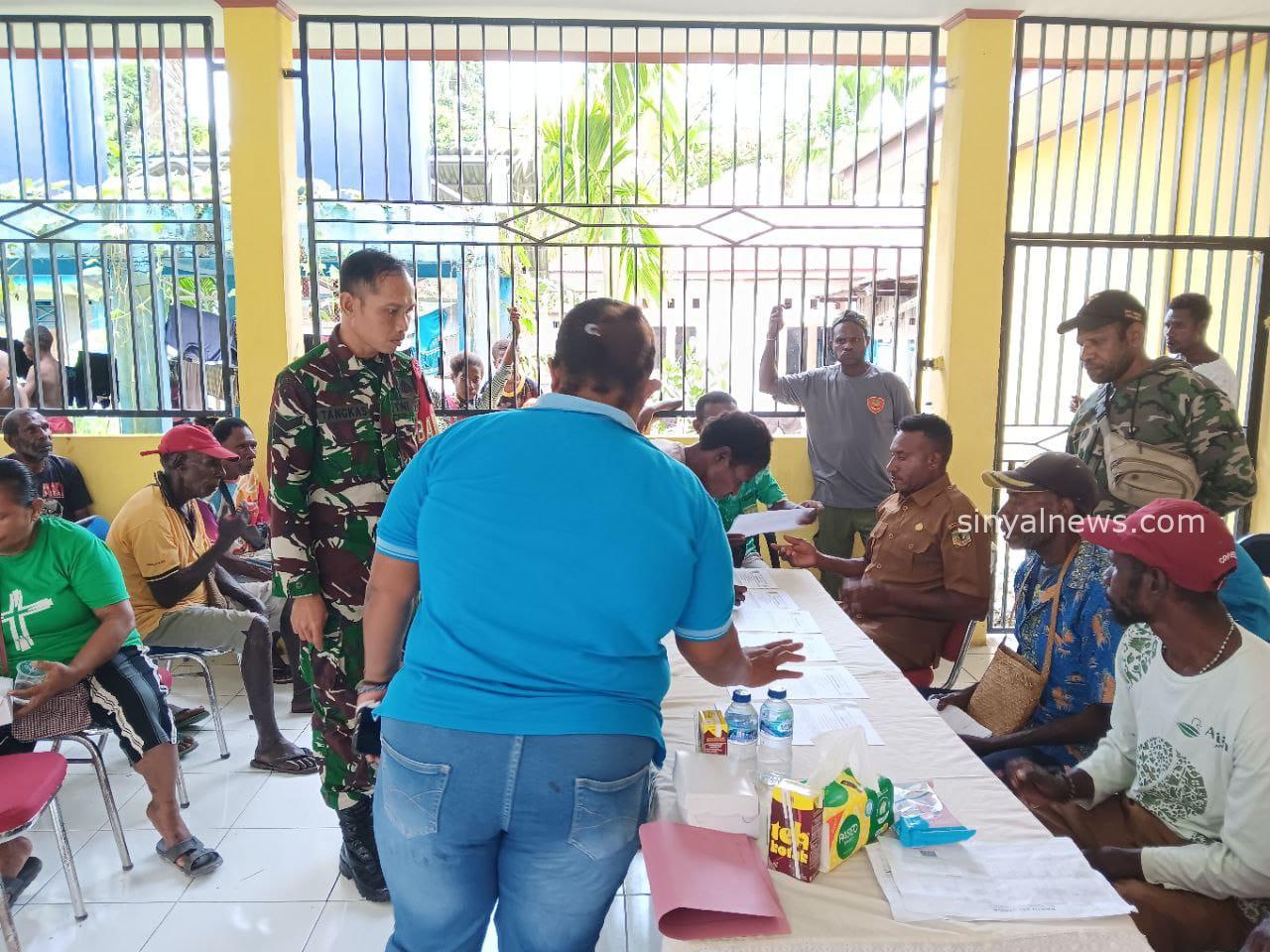 Timika-SINYALNEWS – Bertempat di Balai Kampung Muare, Distrik Mimika Timur, Babinsa Koramil 1710-07/Mapurujaya Sertu Tangkas Budiono melaksanakan pendampingan penyaluran Bantuan Langsung Tunai (BLT) bulan Januari – Juni 2025 kepada warga masyarakat Kampung Muare, Rabu (25/06/2025).