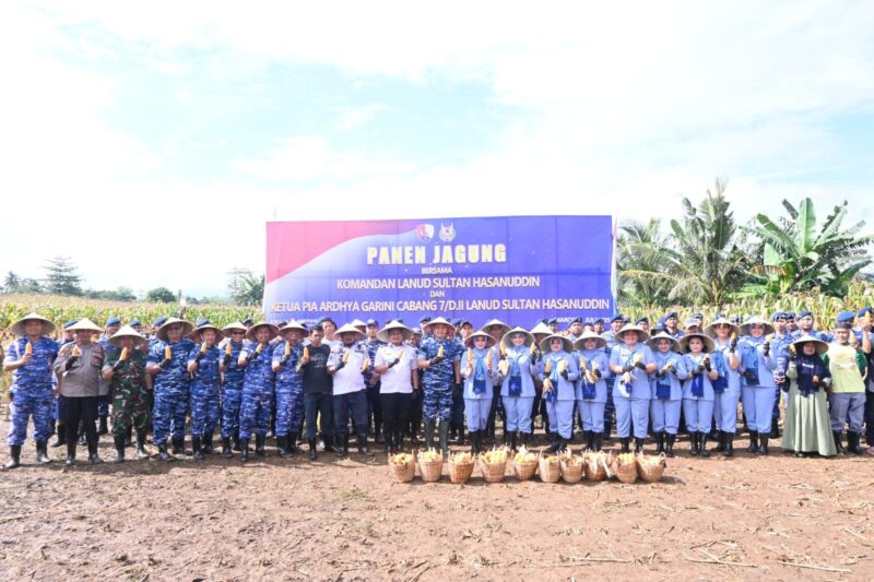 Panen jagung dipimpin langsung oleh Komandan Lanud Sultan Hasanuddin, Marsma TNI Arifaini Nur Dwiyanto, M.Han., didampingi Ketua PIA Ardhya Garini Cabang 7/D. Il Lanud Sultan Hasanuddin, Ny. Betty Arifaini Nur Dwiyanto, bersama jajaran TNI AU, instansi terkait, dan para petani. Kegiatan ini merupakan bagian dari upaya mendukung program Asta Cita Pemerintah dalam memperkuat ketahanan pangan nasional menuju Indonesia Emas 2045. “Momentum Hari Bakti TNI AU bukan hanya untuk mengenang sejarah perjuangan, tetapi juga menjadi wujud nyata sinergitas TNI AU dengan masyarakat. Panen ini mencerminkan semangat gotong royong, dedikasi, dan pengabdian kami untuk kesejahteraan bangsa,” ujarnya