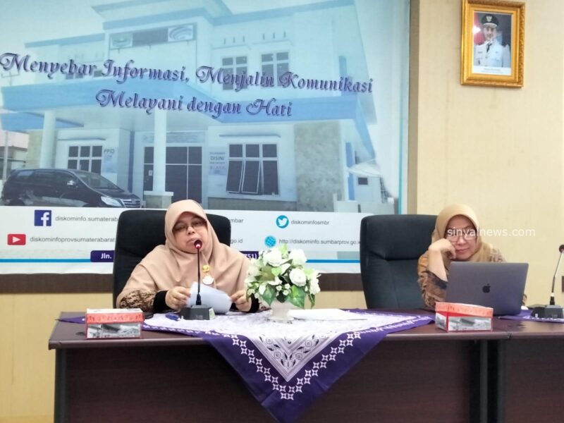 Kepala Dinas Perkebunan Tanaman Pangan dan Hortikultura Sumatera Barat Febrina Tri Susila Putri didampingi Kepala Dinas Kominfotik Sumbar, Siti Aisyah saat jumpa pers dengan wartawan, Kamis (03/07/2025).