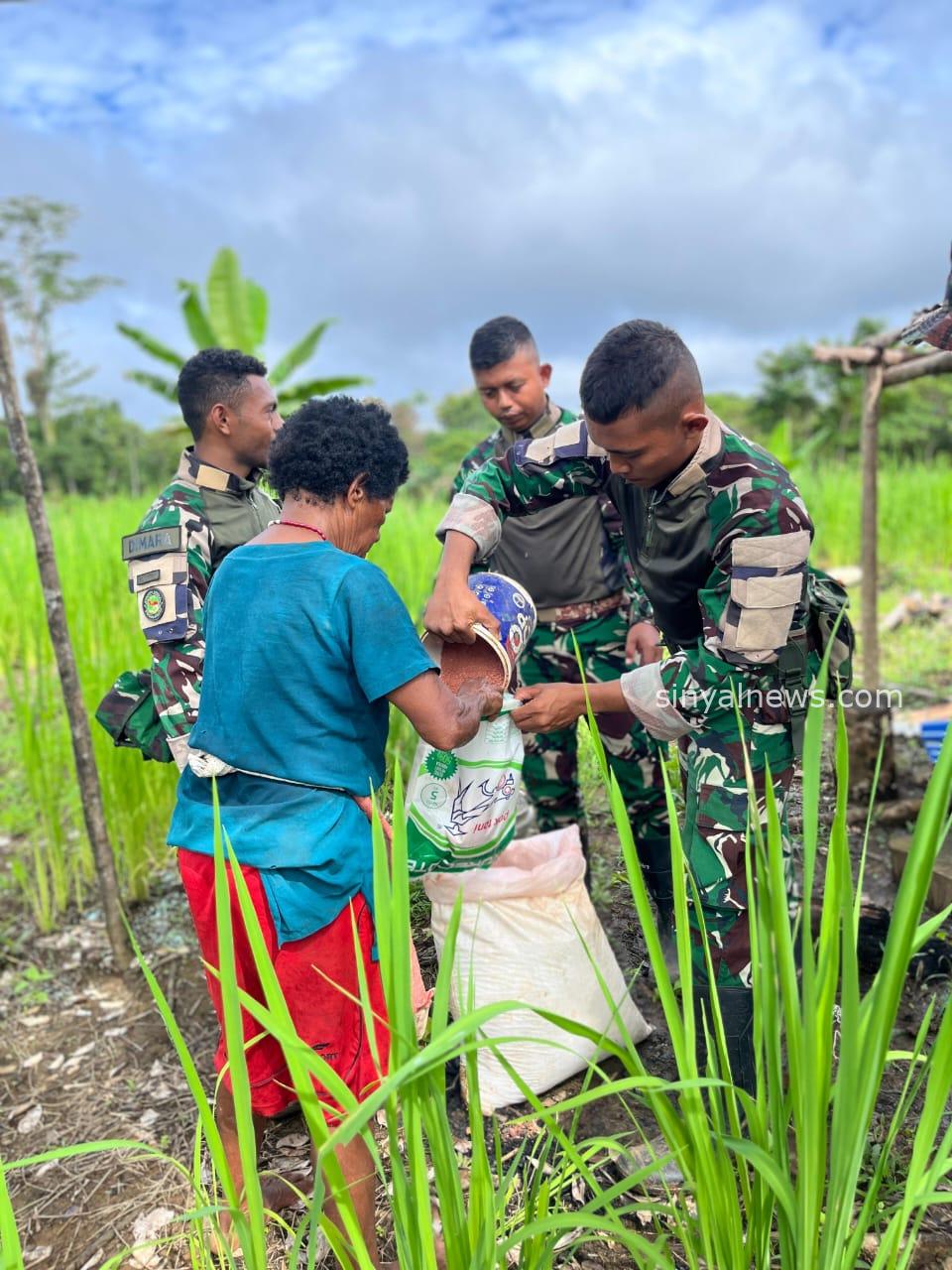 Boven Digoel-SINYALNEWS – Satgas Yonif 126/Kalacakti Pos Kombut terus menunjukkan komitmennya dalam mendukung program Ketahanan Pangan (Hanpangan) Merah Putih di wilayah perbatasan RI–PNG. Sebagai bagian dari lanjutan program tersebut, personel Pos Kombut melaksanakan kegiatan peninjauan pertumbuhan padi gogo di Kampung Kombut, Distrik Kombut, Kabupaten Boven Digoel, sekaligus melakukan pemupukan untuk memastikan tanaman berkembang optimal, Kamis (10/07/2025)