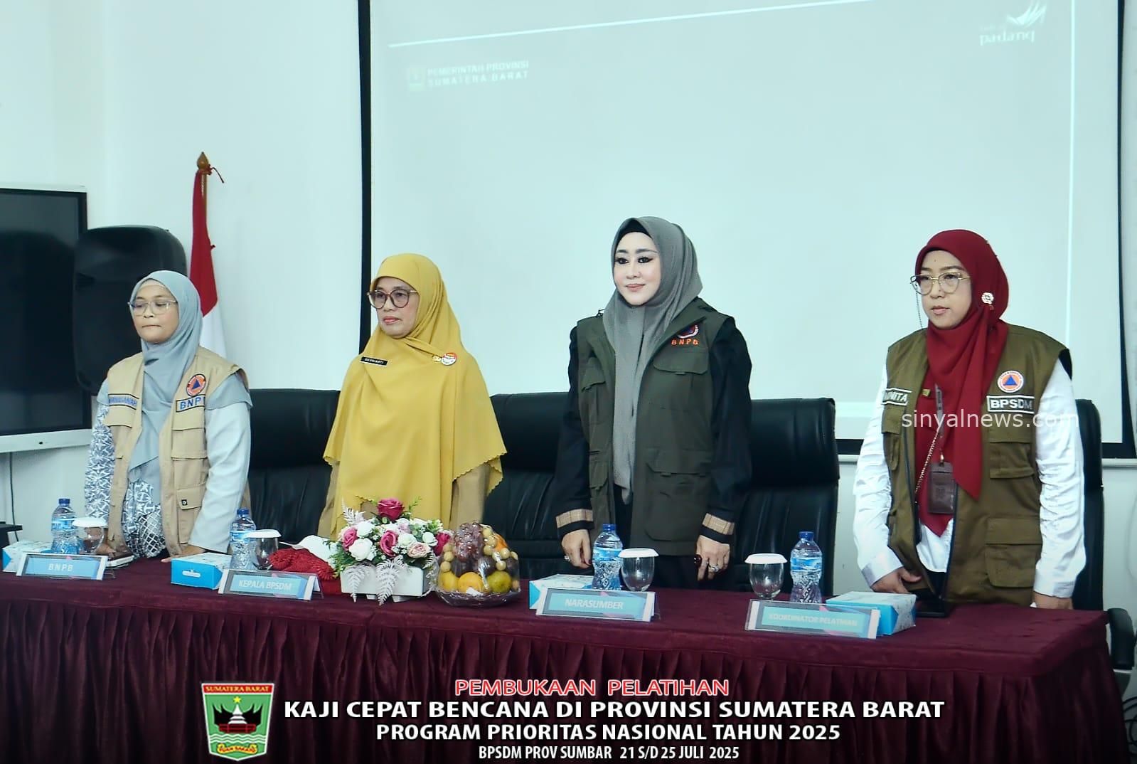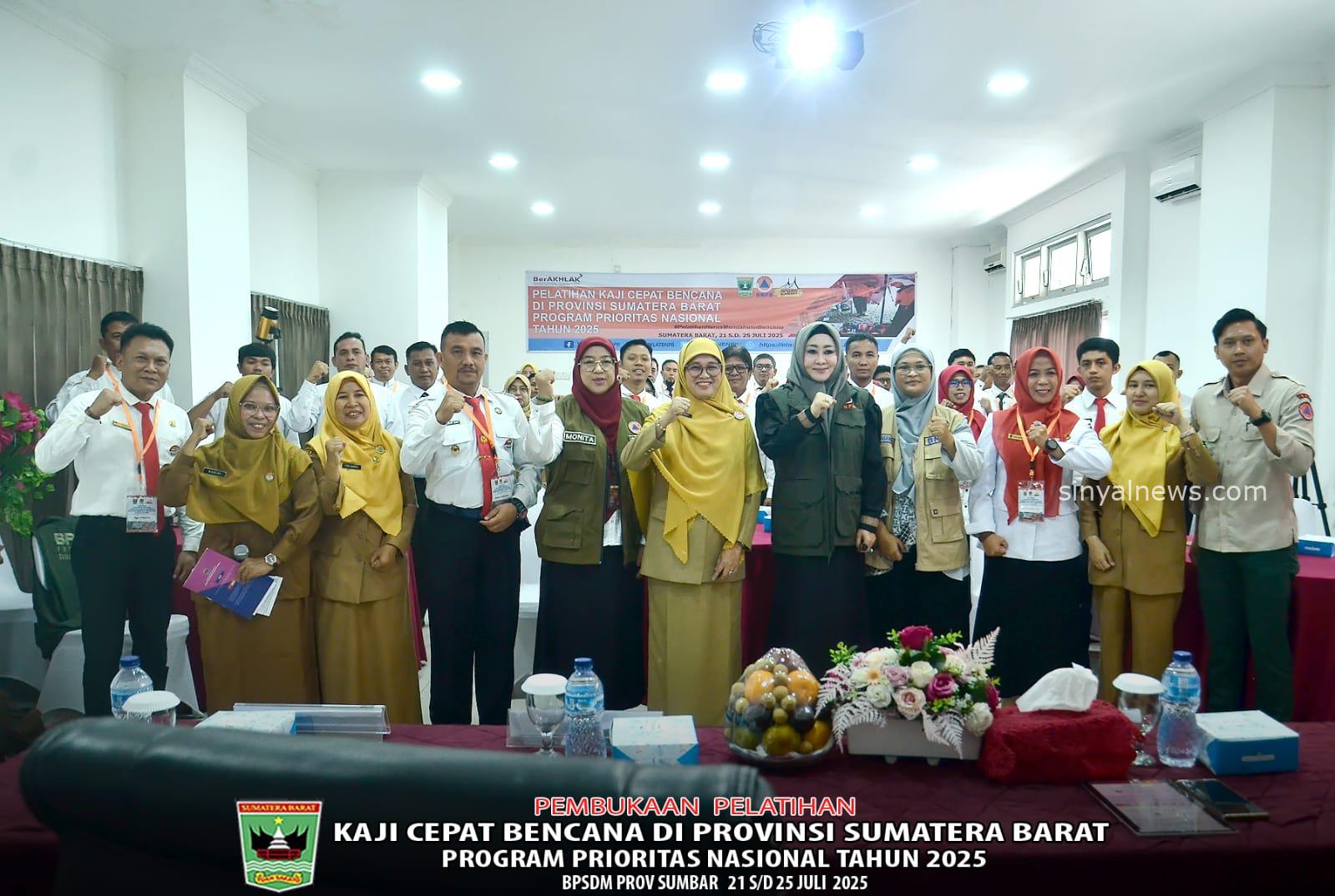 Senin (21/07/2025)-SINYALNEWS, Kepala BPSDM Prov. Sumbar, Bunda Dr. Ir. Desniarti, MM., membuka secara resmi Pelatihan Kaji Cepat Bencana Provinsi Sumatera Barat Sumbar, di Gedung Sakato BPSDM Prov Sumbar dengan peserta berjumlah sebanyak 40 orang. Berasal dari BPBD di 8 kabupaten/Kota, Kab. Padang Pariaman, BPBD Kabupaten Agam, BPBD Kabupaten Pasaman, BPBD Kabupaten Solok Selatan, BPBD Kota Padang, BPBD Kota Pariaman, BPBD Kota Payakumbuh, BPBD Pesisir Selatan dan 10 SKPD Prov. terkait Bencana termasuk RSUD Moh. Yamin Pariaman, BPBD Prov. Sumatera Barat dan BWS Sumatera V Padang.