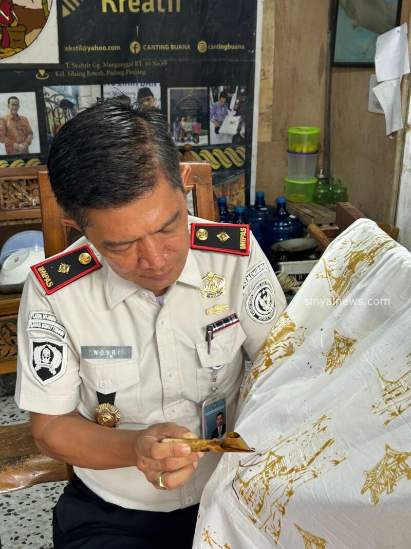 PadangPanjang.Sinyalnews.com-Di sebuah ruang sederhana milik Canting Buana Kreatif, Jumat sore itu (24/04), pemandangan tak lazim tersaji. Seorang kepala rumah tahanan menunduk, bukan di balik meja administrasi, melainkan di hadapan sehelai kain putih. Di tangannya, canting meneteskan malam, perlahan membentuk garis. Bukan sekadar motif batik, tapi arah baru pembinaan.
